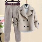Cet ensemble d'hiver trois pièces allie chaleur et style, comprenant une veste, un pull en tricot et un pantalon assorti. La veste à boutons et les poches pratiques sur la veste et le pantalon ajoutent une touche fonctionnelle à ce look chic et décontracté. Idéal pour les journées froides, cet ensemble vous garde élégante tout en étant confortable.