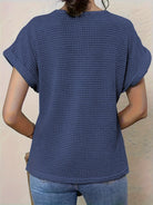 Top à Col Rond en Tricot Gaufré Bordé de Dentelle pour Femmes