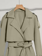 Discover the elegant trench coat that combines sophistication and comfort for the modern woman. Its solid color and self-tie belt add a chic touch, while the relaxed fit allows you to move easily. Perfect for any occasion, this trench coat pairs easily with your favorite outfits.