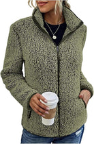 This sherpa-lined jacket combines warmth and casual style. With its convenient zipper, stylish stand-up collar, and soft, textured interior, it's perfect for cooler days. Its long sleeves add extra coverage for optimal comfort.