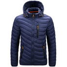This men's outdoor down jacket is designed to provide warmth and comfort while ensuring effective protection against the elements. Featuring multiple zippered pockets and a hood, it combines practicality and style, making it ideal for outdoor adventures. Its high-performance insulation keeps you warm, whether in the city or on your outdoor adventures.